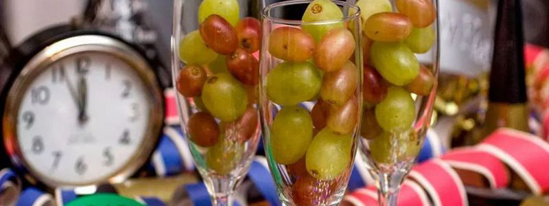 在西班牙,有一个十分有趣的新年习俗,那就 是要吃 12 粒葡萄。当倒计时的午夜钟声开始响起, 每敲打一下,就要吃一粒葡萄,因为每一粒葡萄代 表新的一年里每一个月的好运气。