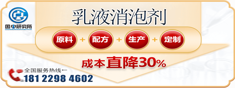国中消泡剂研究所研发的乳液消泡剂主要是氢氧化钾催化作用下,用氟或甘油与环氧丙烷、环氧乙烷等进行聚合制得的消泡剂。特点是消泡快、稳定性强、无色斑等优点,适用于大多数非硅消泡行业做为消泡及抑泡的需要。